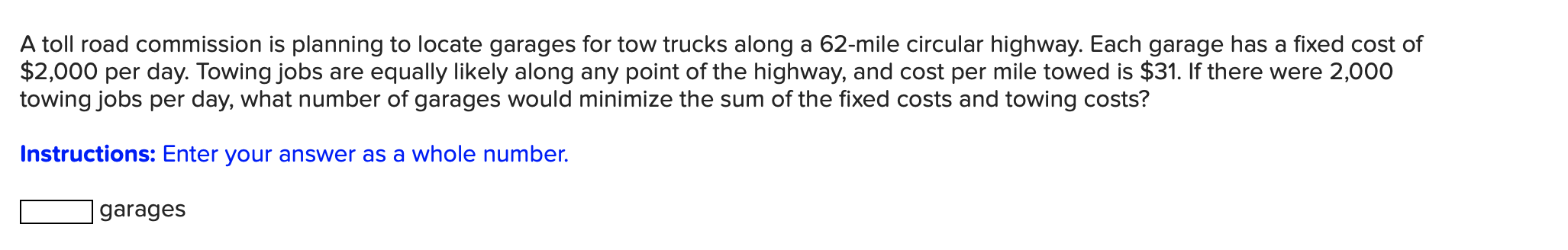 Solved A Toll Road Commission Is Planning To Locate Garages Chegg Com